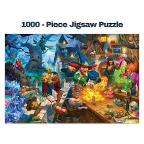 - Quebra-cabeça de 1000 peças: desfrute de horas de entretenimento com este divertido quebra-cabeça de bruxas assustadoras. Para manter tudo organizado, as peças do quebra-cabeça são presas dentro de uma sacola e embaladas em uma caixa colorida que mostra a imagem finalizada como referência.