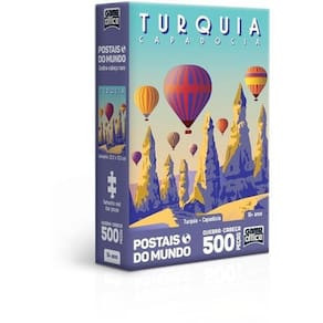 O quebra-cabeça nano de 500 peças Postais do Mundo apresenta ilustrações de belas paisagens ao redor do globo. Essa é a imagem da Capadócia, na Turquia. A Toyster é a fabricante deste modelo e oferece um padrão internacional de qualidade e encaixe suave que pode ser sentido em cada peça