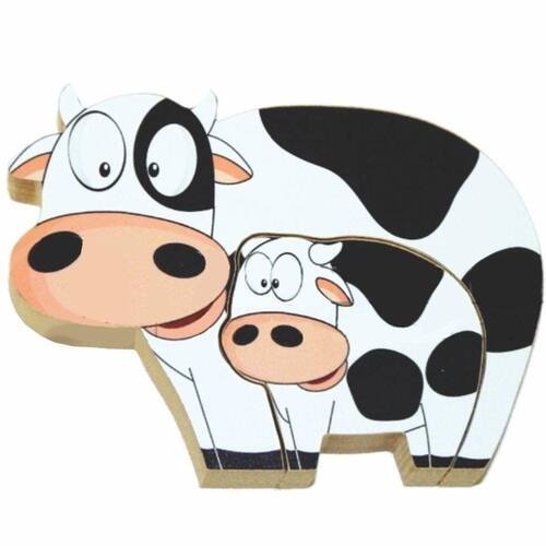 Lindo e divertido quebra cabeça de madeira no modelo da Vaca e seus filhotinhos. O quebra-cabeça é um dos passatempos mais comuns para as crianças. As cores, os tamanhos e as variedades das peças possibilitam um desafio emocionante de montar.