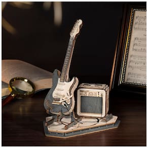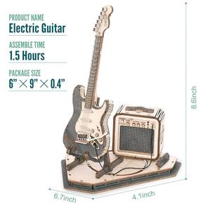 Este é o Kit de modelo de instrumento musical ROKR, um quebra cabeça de madeira 3D no estilo de uma guitarra. Com um número de produto TG605K, este produto tem um tamanho montado de 10 cm x 17 cm x 21 cm e um tamanho de pacote de 140 peças. O tempo de montagem é de cerca de 12 horas e o pacote contém pranchas, lixa e instruções. É importante não aplicar muita força na montagem, mas sim usar habilidades para evitar danos às peças. Este kit é adequado para crianças e adultos e é um brinquedo educativo STEM DIY que pode promover a coordenação olho mão e melhorar o desenvolvimento da inteligência. Este kit também é adequado para adultos como um quebra cabeça 3D divertido e para passar o tempo. Os materiais de madeira são de alta qualidade e cortados a laser, sem farpas e rigorosamente testados pelo departamento de inspeção de qualidade. Este kit vem em uma linda embalagem de presente e é adequado para todas as idades. Ele também pode ser utilizado como uma decoração para casa, adicionando um toque de destreza à estante ou mesa.