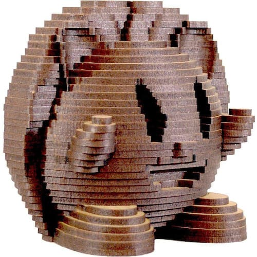 Escultura em madeira, fabricada em mdf através de tecnologia de corte a laser. São diversas lâminas de madeira que, ao serem unidas dão volume e formato ao objeto. Toda a parte estrutural da réplica precisa ser colada com cola preferencialmente para madeira, tipo cola branca, cola instantânea, cola tipo cascorez, entre outras. O produto é enviado totalmente desmontado, mas sua montagem é simples, basta seguir as instruções contidas no manual de montagem. Enviado em mdf natural sem pintura O objeto não tem nenhum tipo movimento e/ou partes móveis, sendo o mesmo utilizado meramente como adorno para colecionadores e aficcionados.