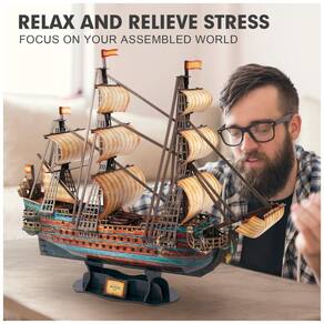 História do San Felipe O San Felipe é conhecido por sua heróica batalha durante a Guerra da Sucessão Espanhola em 1705, foi um dos navios mais belos e formidáveis do século XVII. Nenhum outro navio ou galeão da frota espanhola gera tanta curiosidade quanto o San Felipe e ainda é o favorito dos colecionadores e entusiastas de modelos de navios Grande qualidade de artesanato trouxe o quebra cabeça 3d para a vida O modelo 3d de tirar o fôlego é preciso até o último detalhe, uma construção de casco duplo, planos de construção com detalhes, livreto de instruções em inglês, incluindo canhões de simulação, mastros e longarinas, detalhes de latão gravado e aparelhamento, contém todas as características de projeto da embarcação . Tamanho do modelo embutido 25,59 L x 7,09 W x 22,05 H, 65 x 18 x . Feito de papel e placa de espuma EPS, sem necessidade de ferramentas Complexidade média a alta, projeto detalhado dos processos de montagem Marca: Não Informado