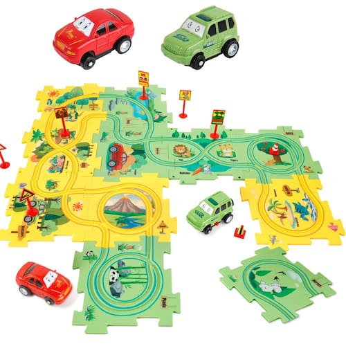 Nome do produto: Conjunto de brinquedo de carro de pista de quebra-cabeça de dinossauro e floresta Características: ao construir caminhos diferentes, este conjunto de brinquedos de quebra-cabeças de chão pode melhorar o pensamento crítico, a criatividade e a coordenação olho-mão das crianças. Idade: 3 anos incluído: 6 quebra-cabeças de dinossauro, 6 quebra-cabeças da floresta, 12 placas de sinalização, 2 carros de brinquedo - Conjunto de carro de pista de quebra-cabeça de dinossauro e floresta: este conjunto de pista de carro infantil inclui 6 quebra-cabeças de dinossauro, 6 quebra-cabeças florestais, 12 placas de sinalização, 2 carros de brinquedo (1 pilha AAA necessária, não incluída). As crianças precisam montar as peças do quebra-cabeça para permitir que o avião siga a pista. - Hora de diversão e desenvolvimento de habilidades: quebra-cabeças e veículos sempre obcecam as crianças, então este é um ótimo brinquedo educativo para mantê-las entretidas e envolvidas por horas. Ao construir rotas diferentes, este conjunto de brinquedos Montessori pode melhorar o pensamento crítico, a criatividade e a coordenação olho-mão das crianças. - Seguro e durável: os quebra-cabeças de chão são feitos de plástico ABS de alta qualidade e as bordas de cada peça são cuidadosamente polidas para que a criança possa segurá-lo com segurança. Estes quebra-cabeças são duráveis e não quebram, duram muito tempo e são passados de uma criança para outra. - Fácil de armazenar e limpar: o conjunto de brinquedos de pista de carro de corrida de quebra-cabeça é compacto e fácil de armazenar ou carregar, e adequado para meninos e meninas brincarem em casa ou ao ar livre. Sem fendas ou peças pequenas, o brinquedo de plástico rígido pode ser facilmente limpo. - Presente perfeito para crianças: este conjunto de brinquedos é um brinquedo educativo perfeito para meninos de 3, 4, 5 e 6 anos de idade; é um presente ideal para aniversário, Natal, Páscoa e outros feriados. Os pais podem brincar com as crianças, criar um novo caminho juntos para desfrutar de momentos felizes com a família