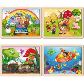 Quebra-cabeças de madeira 4-1 para crianças. Os quebra-cabeças compostos de material de madeira de alta qualidade premium são um presente maravilhoso para as crianças promoverem o hábito do pensamento de identificação de cores e formas, com o resultado de que sua capacidade de memória será enormemente aprimorada. O quebra-cabeça projetado como brinquedo, que aproveita o layout da imagem, pode despertar o grande interesse das crianças para dominar objetos, mundo animal e combinação do mundo do mar. Este quebra-cabeça de madeira é adequado para crianças de 3 a 8 anos de idade. As crianças são agradáveis ao mergulhar em objetos de aprendizagem para desafiar a mente jovem, realizar a imaginação e se divertir. - Quebra-cabeças de madeira divertidos para crianças: o conjunto de quebra-cabeças de madeira contém 4 pacotes de 24 peças de quebra-cabeças de madeira duráveis e brilhantes que se encaixam suavemente quando montadas para mostrar 4 temas animais atraentes de zoológico, inseto, fazenda e vida marinha. Tudo em uma caixa colorida. - Seguro e durável: produto feito com certificação FSC. O quebra-cabeça de madeira é feito para crianças usando técnicas de corte finas, feito de material de madeira de alta qualidade, e as bordas de cada peça são cuidadosamente polidas para que a criança possa segurá-lo com segurança. Estes quebra-cabeças são duráveis o suficiente para serem utilizados repetidamente por crianças de 3 a 5 anos. - Quebra-cabeça de madeira maior e resistente: Tamanho final 30 x 22 cm. Nossos quebra-cabeças são mais grossos. Também temos ilustrações de papel removíveis sob as imagens de quebra-cabeça de madeira, que são interessantes, coloridas e únicas. As crianças podem servir como referência. Cada quebra-cabeça tem uma moldura de madeira para ajudar a manter as peças no lugar. - BRINQUEDOS EDUCACIONAIS: Este quebra-cabeça combinando foi construído para ajudar as crianças a treinar sua imaginação a desenvolver a coordenação olho-mão e praticar a resolução de problemas, bem como habilidades de raciocínio espacial enquanto trabalham para completar o quebra-cabeça. Mantenha as crianças ocupadas e economize tempo dos pais. Mergulhe seu filho no mundo dos animais. - Ótima ideia de presente para crianças: o conjunto de quebra-cabeça infantil é uma ótima opção de presente para pré-escola, abertura do jardim de infância, aniversário, Dia de Ação de Graças, Natal/Natal, Páscoa e outros feriados. 24 peças de quebra-cabeças de madeira são adequadas para meninos e meninas de 3 4 5 e 6 anos. Aproveite o tempo em família enquanto todos interagem juntos e construa uma infância colorida para seus filhos.