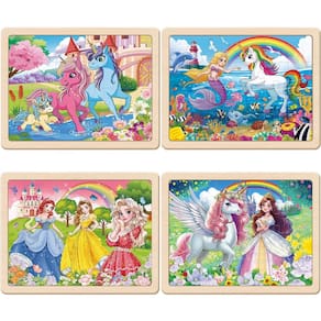 Quebra-cabeças para crianças de 4 a 6 anos, grande, 24 peças, princesa, sereia, unicórnio, - ?Temas envolventes para meninas?O conjunto de quebra-cabeças de madeira contém 4 pacotes de 24 quebra-cabeças de madeira, cada 24 peças de madeira duráveis, quando montado para mostrar 3 temas atraentes de meninas, unicórnio, sereia e princesa, tudo em uma caixa colorida. - ?Design exclusivo?Com seu design de princesa e unicórnio, este quebra-cabeça certamente cativará os corações e mentes de meninas de 4 a 8 anos. Este quebra-cabeça usa tecnologia de corte fino e é adequado para crianças pequenas. As bordas lisas são livres de rebarbas e não prejudicam seu filho. - ?Ótimo brinquedo educativo?Com um tamanho final de 30 x 22 cm. quebra-cabeças para crianças de 4 a 6 anos que estimulam o cérebro enquanto brincam! Não apenas oferece diversão para crianças, mas também ajuda a praticar a resolução de problemas e o raciocínio espacial enquanto elas trabalham para completar o quebra-cabeça. - ?Bandeja de armazenamento de madeira resistente? Com ilustração de papel removível sob as peças do quebra-cabeça de madeira para guiar onde as peças vão, as crianças podem usá-la como referência. - ?Escolha perfeita de presente? Os quebra-cabeças de madeira para crianças são ótimas opções para aniversário, Natal, Páscoa e qualquer outro feriado. Com cores vibrantes e designs adoráveis, as crianças certamente vão gostar desses quebra-cabeças.