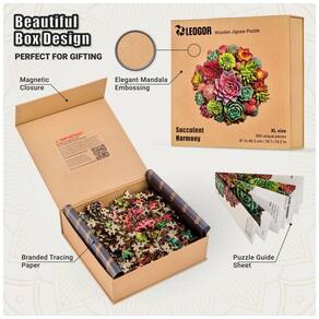 Este quebra cabeça de madeira cortado a laser é um produto artesanal de alta qualidade, feito com madeira premium de 5 mm para garantir um ajuste perfeito. Inspirado na natureza, o quebra cabeça redondo apresenta formas extravagantes, desde flores vibrantes até formas estranhas de insetos e vida selvagem, proporcionando uma experiência desafiadora e envolvente com suas 50 peças de formato exclusivo. O conjunto vem em uma linda caixa inspirada na arte da mandala, tornando o um presente memorável para qualquer ocasião especial. Além disso, é perfeito tanto para vínculo familiar quanto para atividades zen solo, elevando sua experiência intrigante a novos patamares.