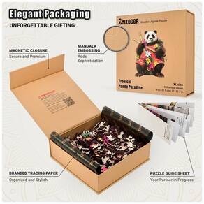 Este quebra cabeça de panda é feito com madeira de alta qualidade de 5 mm e corte a laser de precisão, o que garante que cada peça se encaixa perfeitamente. Com um tamanho extra grande, este quebra cabeça é uma escolha premium para adultos que buscam qualidade. As formas extravagantes, insetos vibrantes, flores e plantas grandes e pequenas presentes no quebra cabeça oferecem um mosaico colorido da beleza da natureza, tornando o uma escolha artística para os fãs de arte e vida selvagem. O quebra cabeça vem em uma linda caixa, tornando o um presente ideal para amantes de quebra cabeças, tanto mulheres quanto homens, e perfeito para noites de jogos em família. Este quebra cabeça exclusivo cortado em madeira é ótimo para aniversários e feriados, ou como um retiro zen. Além disso, este quebra cabeça de animais não é apenas um brinquedo criativo, mas um quebra cabeças avançado infundido com magia, mistério e fantasia que promove a resolução de problemas culminando em um triunfo do intelecto.