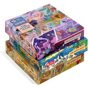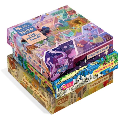 Pacote com 3 quebra-cabeças mágicos • Série Um • The Happy Isles, The Mystic Maze e The Sunny City • Quebra-cabeças de 1000 peças da The Magic Puzzle Company