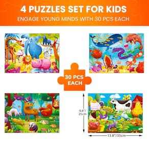 - Pacote com 4 quebra-cabeças infantis: com o conjunto da QUOKKA, você ganha 4 quebra-cabeças de 11,4 x 8,3 polegadas para crianças de 3 a 5 anos; nossos brinquedos para meninas de 6 a 8 anos são feitos de papelão seguro de alta qualidade; cada quebra-cabeça gigante de chão de 30 peças vem com uma caixa de armazenamento que mostra obras de arte completas