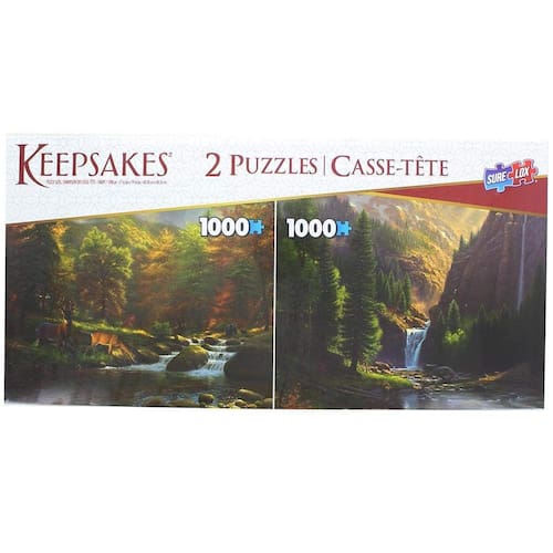Teste suas habilidades com este conjunto de dois quebra-cabeças coloridos de 1000 peças. Um desafio divertido que cria peças de exibição incríveis quando concluídas. Os quebra-cabeças são feitos com a tecnologia patenteada Sure-Lox, garantindo peças de quebra-cabeça cortadas com precisão que se encaixam perfeitamente sempre. As peças do quebra-cabeça são guardadas dentro de uma sacola e embaladas em uma caixa colorida com imagens do quebra-cabeça para resolver. Os quebra-cabeças são uma atividade divertida para fazer sozinho ou em grupo e são um ótimo presente para todas as idades em aniversários e feriados.