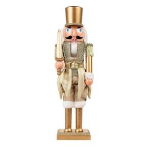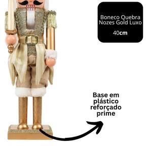 Adicione imponência e requinte à sua decoração de Natal com este Quebra-Nozes decorativo dourado gold modelo luxo, uma peça clássica que simboliza proteção e tradição natalina. Com 40cm de altura e 9cm de largura, este enfeite se destaca pelo seu acabamento sofisticado em dourado brilho, figurino detalhado e espada em mãos, pronto para enfeitar sua casa com elegância.
