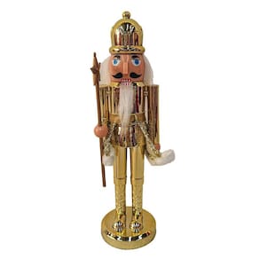 A magia do Natal começa aqui com o nosso Boneco Quebra-Nozes Decorado em Pintura Eletroestática Dourada de 17cm!