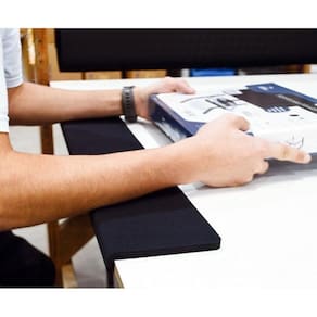 Descrição Quebra-quina apoio para braço CONFORT Large Acessório ergonômico voltado para superfícies com quina viva, reduzindo a compressão dos braços e cotovelos, auxiliando na circulação sanguínea correta dos membros e prevenindo possíveis lesões que podem se agravar com o tempo. Pode ser utilizado em postos de trabalho de maneira geral: estações com computadores, balcões operação de máquinas, bancadas de produção, etc.