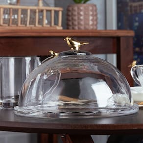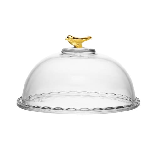 Queijeira bird golden 20cm com tampa cristal grosso de mesa Nossa queijeira de cristal grosso brids pássaro, é um item que dará sofisticação na sua mesa posta. Com um pássaro em seu pegador, faz o item ser perfeito e charmoso para sua casa. Cabendo um queijo minas normal e também queijos coloniais. Feita em cristal grosso, deixando mais resistente e durável. Compre outros itens da mesma, em nossa loja.