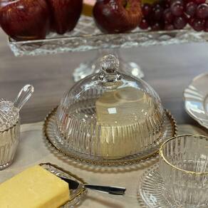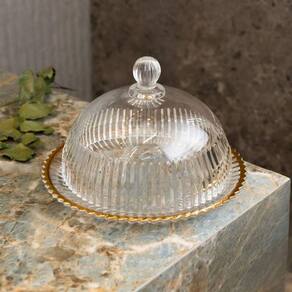 Elegância Duradoura: Com um design impecável e brilho inconfundível, esta queijeira ilumina a mesa e eleva a experiência de servir queijos. O fio de ouro, sutil e sofisticado, oferece exclusividade e glamour, tornando cada refeição mais refinada.