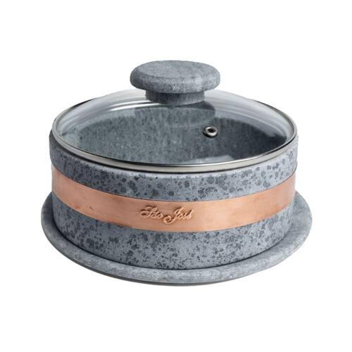 A queijeira em pedra sabão com acabamento em cobre é ideal para quem quer servir queijos com muito mais charme, praticidade e conservação, valorizando tanto o sabor quanto a apresentação. A pedra sabão ajuda a manter a temperatura mais estável, evitando variações bruscas que podem alterar a textura do queijo, além de não interferir no sabor. O detalhe em cobre traz um visual rústico sofisticado e reforça a estrutura da peça, garantindo firmeza e durabilidade no uso diário. Muito utilizada para servir queijos variados, frios e até pequenos petiscos, ela é perfeita para mesas de café, tábuas de aperitivos, encontros com amigos ou ocasiões especiais. Além de funcional, é uma peça decorativa que chama atenção pela beleza artesanal, unindo tradição, resistência e elegância em um único produto pensado para quem gosta de servir bem.