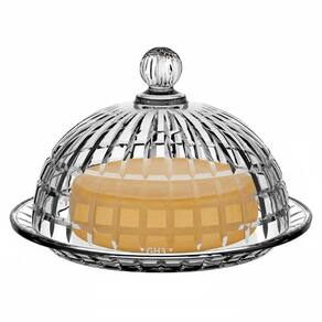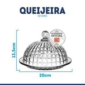 Especificação: Modelo: Queijeira com tampa Marca: GH3 ou Mek Material: Vidro Tamanho: 20 x 13,5 cm Peso total: 1kg.