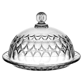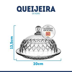 Especificação: Modelo: Queijeira com tampa Marca: GH3 ou Mek Material: Vidro Tamanho: 20 x 13,5 cm Peso total: 1kg.