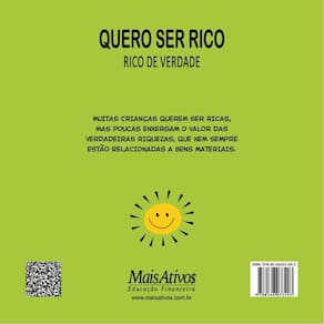 Quero ser rico, rico de verdade destaca a existência de valores mais importantes do que o dinheiro para sermos felizes. Amizade, família, sonhos , solidariedade são alguns dos temas tratados. Apropriado para crianças da educação infantil e das primeiras séries do ensino fundamental. Recomendado para projetos literários, de estímulo à leitura e para introduzir e apoiar educação financeira em casa e nas escolas. Marca: MAIS ATIVOS **
