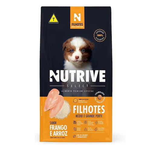 Ração Cães Nutrive Select Filhotes Med/Gd. Fran/Arr 15kg- Indicado para cães;- Promovem crescimento e desenvolvimento saudáveis;- Atua no desenvolvimento cognitivo e na saúde do coração;- Mais saúde e proteção para as articulações;- Auxilia no equilíbrio intestinal;- Fezes mais firmes e com odor reduzido;- Auxilia na força e brilho dos pelos e saúde da pele. Marca: Nutrive