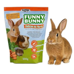 Ração Coelho Funny Bunny 500g Delícias da Horta Premium A Funny Bunny Delícias da Horta 500g é um alimento Super Premium, desenvolvido especialmente para coelhos, porquinhos-da-índia, hamsters e pequenos roedores. Produzida pela Supra Pets, é uma ração completa e balanceada que proporciona nutrição de alta qualidade, auxiliando na saúde, energia e bem-estar dos pets. Com ingredientes naturais e livre de corantes artificiais, esta ração é rica em vitaminas A e C, contém cenoura e alfafa, além de extrato de yucca, que ajuda a reduzir o odor das fezes e contribui para uma digestão mais saudável.