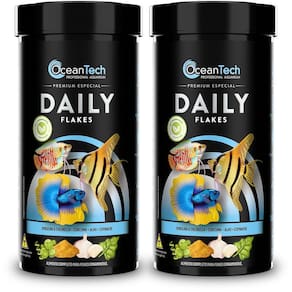 Especificações: Marca: OceanTech Revendedor: Mega Aquários Modelo: Daily Flakes Tipo: Flocos ração flutuante que circula com o movimento da água Peso líquido: 200g