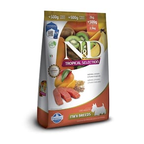 Ração Farmina N&D Tropical Selection Cães Adultos Porte Mini - Indicada para cães;br / - 90% de proteínas de origem animal;br / - 0% de corantes;br / - 0% de aromas artificiais;br / - Com conservantes naturais;br / - Livre de transgênicos;br / - Tecnologia vacuum coater;br / - Feito em atmosfera controlada;br /