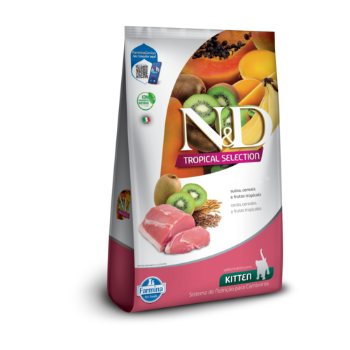 - Indicado para gatos filhotes e fêmeas em gestação ou lactação. - Feito com proteína suína, frutas tropicais e cereais selecionados - Sem corantes artificiais, com variação natural na cor dos croquetes. - Enriquecido com vitaminas, minerais e ácidos graxos essenciais. - Croquetes com tamanho ideal para gatos filhotes (diâmetro 6-8 mm, espessura 3-5 mm).
