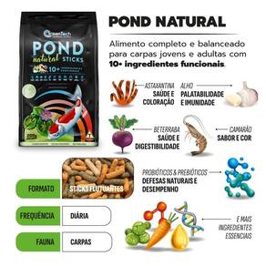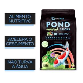 Ração Ocean Pond Natural Sticks 200g Ocean tech Pond Natural Sticks é um alimento completo na forma de sticks flutuantes para o uso diário, feito com ingredientes Premium com qualidade e quantidade adequada de proteínas de alta digestibilidade, vitaminas, aminoácidos, minerais, prebióticos, probióticos e carotenoides naturais para um crescimento saudável e cores vibrantes. É produzido com ingredientes naturais e totalmente livre de conservantes e corantes artificiais, mantendo a saúde da sua carpa. Pond Natural Sticks um alimento ideal para carpas jovens e adultas.