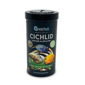Ração Ocean Tech Cichlid Color e Health 75g Oceantech Cichlid Color e Health é um alimento balanceado, desenvolvido para ciclídeos onívoros de médio e grande porte, promovendo crescimento rápido e coloração vibrante. Formulado com proteínas animais e vegetais de alta qualidade, é ideal para peixes que necessitam de uma dieta rica em proteínas e carotenoides. A combinação de camarão, e krill fornece proteínas e ômega 3, essenciais para o desenvolvimento muscular e a saúde geral. A alga Ascophyllum Nodosum contribui para o fortalecimento do sistema imunológico, enquanto a espirulina oferece antioxidantes que estimulam a vitalidade. A ervilha auxilia na digestão e a alfafa adiciona fibras e nutrientes. O alho fortalece as defesas naturais, e a astaxantina intensifica a coloração dos peixes. Além disso, os compostos naturais cinamaldeído, carvacrol e fornecem propriedades antimicrobianas, enquanto a zeólita melhora a qualidade da água, mantendo o aquário limpo e saudável. Com Oceantech Cichlid Color e Health, seus peixes terão crescimento saudável e cores intensas. Indicação de uso: Alimento completo, na forma de bastões, para ciclídeos. Modo de usar: Oferecer duas a três vezes ao dia, em quantidade suficiente para ser totalmente consumida em poucos minutos, sem deixar sobras.