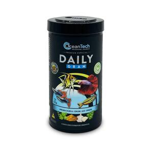 Oceantech Daily Gran é um alimento completo e balanceado, formulado para atender as necessidades nutricionais das mais diversas espécies de peixes ornamentais em aquários comunitários. Sua formulação possui proteínas de origem animal e vegetal de alta qualidade, fornecendo a qualidade necessária de aminoácidos para o desenvolvimento dos animais. Isso torna o alimento mais nutritivo e palatável, evitando sobras no fundo do aquário.
