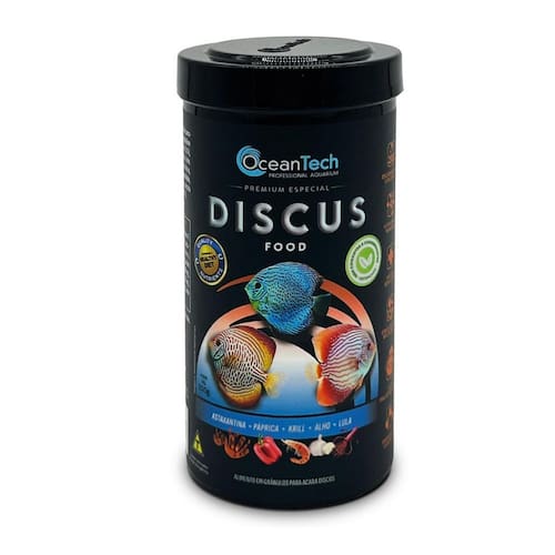 Ração Ocean Tech Discus Food 100G Alimento completo e nutritivo, formulado com ingredientes selecionados para atender às necessidades dos acarás discos e outros peixes exigentes. Seus grânulos de alta digestibilidade são ricos em proteínas, carotenoides e aminoácidos essenciais, promovendo crescimento rápido e cores vibrantes. A combinação de farinha de peixe, farinha de camarão, farinha de e krill fornece proteínas de alta qualidade, enquanto a alga kelp rica em fucoidan favorece a saúde geral. A páprica e a astaxantina intensificam a coloração, o óleo de salmão é rico em ácidos graxos essenciais para a saúde da pele e das nadadeiras. Além disso, o alho fortalece o sistema imunológico e a zeólita melhora a qualidade da água, absorvendo impurezas e reduzindo resíduos. Com OceanTech DISCUS FOOD, seus peixes terão um crescimento saudável, cores intensas e um ambiente aquático mais limpo e equilibrado. Dimensões: -pote 100 gramas. Vantagens: -alimento criado com base em pesquisas e experiências de criadores profissionais. -desenvolvida para atender às necessidades nutricionais dos peixes Acará-disco. -seus ingredientes cuidadosamente selecionados promovem saúde e vitalidade. -promove o crescimento saudável e mantém as cores vibrantes. Características: -fortalece o sistema imunológico. -grânulos flutuantes. -ração Premium.