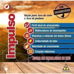 O perfil nutricional de supra impulso obedece a padrões de ingredientes Formulados com matérias-primas selecionadas, com excelente digestibilidade e altos níveis de aminoácidos essenciais, vitaminas e minerais. Produto atual, formulado mantendo relações ideais entre aminoácidos, Balanço eletrolítico adequado e utilizando a enzima exógena fitase para Melhor aproveitamento do fósforo fítico e menor impacto sobre o ambiente. Apresenta em sua composição promotor de crescimento e adítico Coccidiostático para maximizar o desempenho na fase pré-inicial de Frangos de corte. O produto apresenta-se na forma triturada.