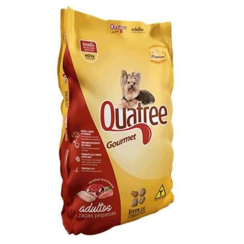 Ração Quatree Gourmet Cães Adultos Raças Pequenas 3Kg Quatree Gourmet Adultos Raças Pequenas é um alimento elaborado com matérias-primas selecionadas, que proporciona uma alimentação completa para o seu cão. Possui polpa de beterraba e prebiótico (MOS) para um ótimo equilíbrio intestinal, e extrato de yucca, que auxilia na redução do odor das fezes. Fornece os ácidos graxos essenciais ômegas 3 e 6, importantes para manter a pelagem bonita e a pele saudável. Contém hexametafosfato de sódio, ingrediente que contribui para a prevenção da formação do tártaro. Quatree Gourmet Adultos Raças Pequenas é um alimento Premium balanceado e saboroso para o seu companheiro. Validade: 26/02/2022