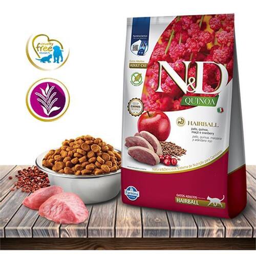 Descrição: A Ração Seca Farmina N&D Quinoa Feline Hairball Pato, Maçã e Cranberry para Gatos Adultos é formulada especificamente para atender às necessidades nutricionais dos felinos adultos. Elaborada com ingredientes selecionados, esta ração oferece uma dieta completa e equilibrada, ajudando a prevenir a formação de bolas de pelos. Parte da linha N&D Quinoa da Farmina, esta ração se destaca por ser funcional e livre de cereais, proporcionando mais de 90% das proteínas provenientes de fontes animais inovadoras. A adição da quinoa, um ingrediente rico em propriedades nutricionais, promove uma alimentação de alta qualidade para garantir o bem-estar dos gatos.