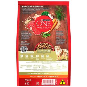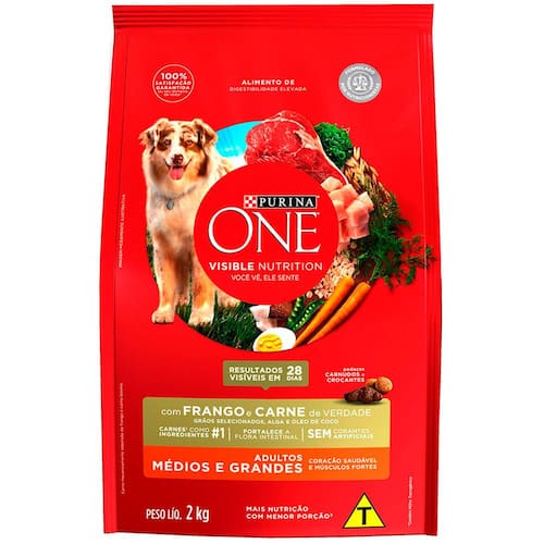 Ração Seca para Cães Purina One Adultos Médios e Grandes Frango e Carne é um alimento completo e balanceado. Formulado por nutricionistas, contém ingredientes naturais e funcionais em combinações ótimas para uma saúde visível do seu pet. Cada ingrediente foi cuidadosamente selecionado com um propósito e transformado através de um processo especial de cozimento para um alimento delicioso e de nutrição superior.