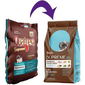 Ração Seca Quatree Frango/Batata Raças Pequenas 10.1 KgRação Seca Quatree Supreme Frango e Batata Doce Cães Filhotes Raças Pequenas 10.1 kg - Biotina, zinco e ômega 3 e 6: pele e pelagem saudáveis; - Importante para o desenvolvimento ósseo e corporal: cálcio e fósforo; - Rica em DHA: auxilia o desenvolvimento da visão e do sistema nervoso central; - Antioxidantes naturais, vitaminas C e E, polifenóis de maçã, chá verde, tocoferol e selênio; - Indicada para fêmeas a partir da sexta semana de gestação até o desmame total dos filhotes; - Alta palatabilidade: proteínas de valor biológico que favorecem a formação da massa muscular; - Auxilia na saúde intestinal e diminuição do odor das fezes: fibras funcionais naturais, polpa de beterraba, prebióticos (MOS e FOS) e extrato de Yucca.