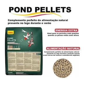 Pond Pellets é um alimento de verão, sem corantes nem conservantes, para peixes de lago, a temperaturas da água superiores a 17 C.