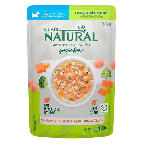 A Ração Úmida Guabi Natural Grain Free Frango, Salmão e Vegetais para Cães é um alimento natural e altamente palatável para agradar o paladar do seu amigão. Feita com brócolis, uma fonte de proteínas, fibras alimentares e minerais, como por exemplo: cálcio e ferro. Contém frango e salmão, responsáveis por fornecedor proteína de elevada absorção e sabor. Composta com abóbora que conta com vitaminas e carboidratos, como por exemplo: vitaminas do complexo B e betacaroteno. Uma ração deliciosa, elaborada com carinho para saciar a fome do seu amiguinho.