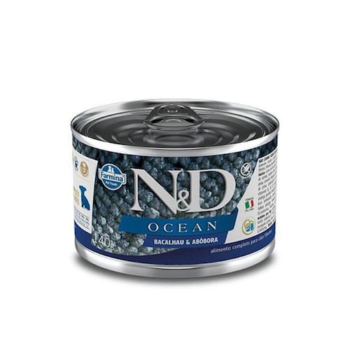 Ração úmida lata farmina n&d ocean bacalhau & abóbora para cães filhotes 140g