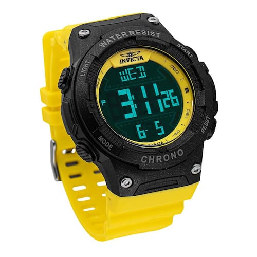 Tipo de movimento cor digital Digital Digial Tono de banda preta Material de banda amarela Tamanho do poliuretano 52mm Resistência à água de 100m3 anos Garantia em todos os relógios de terra Ordem do solo em pedidos 149 todos os pedidos são enviados no mesmo dia ou no dia seguinte