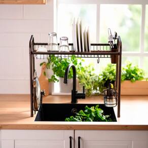 Rack 1 Organizador de Pia Arthi Black - Otimização Vertical da Bancada O Rack 1 Organizador de Pia da Arthi é a solução perfeita para liberar a área de trabalho da sua bancada, transferindo a organização e a secagem da louça para o espaço vertical acima da pia. Este modelo de tamanho generoso oferece alta capacidade de armazenamento com um design moderno e sofisticado. Características Físicas e Funcionais: Design Suspenso/Sobre a Pia: A estrutura é projetada para ficar sobre a cuba da pia, permitindo que a água escorra diretamente para o ralo, mantendo a bancada totalmente seca e livre. Tamanho Grande: Com 64,4 cm de comprimento, oferece amplo espaço para organizar pratos, copos e utensílios do dia a dia. Estilo Moderno: Fabricado em Aço Carbono com acabamento em Pintura Epóxi na cor Preta, conferindo um visual elegante, minimalista e resistente à umidade (Linha Black). Multifuncional: Estrutura modular que geralmente inclui compartimentos para pratos, copos e talheres. Durabilidade: A pintura epóxi protege o aço carbono, garantindo um produto robusto e maior vida útil. Marca: Arthi (Ref. 2541). Especificações Técnicas: Funcionalidade: Escorredor e organizador vertical para uso sobre a pia. Cor: Preto (Black). Dimensões: Comprimento 64,4 X Largura 29 X Altura 54 cm. Material: Aço Carbono com Pintura Epóxi.