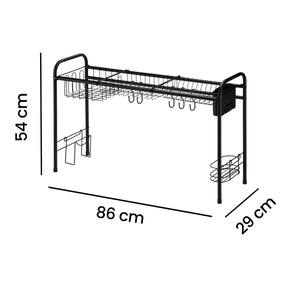 Rack 11 Organizador de Pia Arthi Black - Otimização Total da Bancada O Rack 11 Organizador de Pia da Arthi é a solução premium e de alta capacidade para transformar a organização da sua cozinha, utilizando o espaço vertical acima da pia. Ele é ideal para otimizar bancadas grandes, mantendo pratos, copos e utensílios secos e acessíveis sem ocupar espaço horizontal. Características Físicas e Funcionais: Alta Capacidade e Tamanho Grande: Com 86 cm de comprimento, é um dos maiores racks do mercado, oferecendo amplo espaço para louças, potes e acessórios. Design Suspenso: A estrutura é projetada para ficar sobre a pia, permitindo que a água escorra diretamente para dentro da cuba, mantendo a bancada seca. Estilo Moderno: Fabricado em Aço carbono com acabamento em Pintura Epóxi na cor Preta, que confere um visual elegante, minimalista e resistente à umidade (Linha Black). Multifuncional: Inclui diversos compartimentos para pratos, copos, talheres e outros utensílios (a descrição da Arthi geralmente inclui escorredores e cestos). Durabilidade: A combinação de aço e pintura epóxi garante um produto robusto e maior vida útil. Marca: Arthi (Ref. 2540). Especificações Técnicas: Funcionalidade: Escorredor e organizador vertical para uso sobre a pia. Cor: Preto (Black). Dimensões: Comprimento 86 X Largura 29 X Altura 54 cm. Material: Aço carbono com Pintura Epóxi.