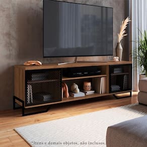 Rack 180 Cm 2 PT Aparador 130 Cm Industrial 27X21, para você que deseja transformar sua sala em um ambiente mais moderno com design e qualidade acima de tudo. Tampos em MDP de 30 mm, prateleiras em MDP de 15 mm, bases de tubo em metal de 20 mm. O Rack conta com 03 prateleiras e 02 portas com tela. O Aparador possui 02 prateleiras para seus objetos e decoração, além de telas nas laterais. O peso suportado por cada um é de 30 Kg distribuídos. 02 móveis que em conjunto irão valorizar muito seu ambiente. Estes móveis chegarão na sua casa separados em 04 volumes.