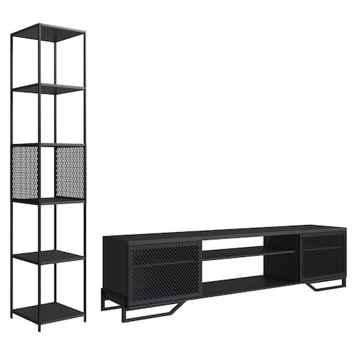 Rack 180 Cm 2 PT Estante Prateleira Industrial 27X23, agrega aquele ar de ambiente contemporâneo e bem decorado que você busca, juntamente com qualidade absoluta. Estrutura em MDP e metal, sendo o tampo do rack de 30 mm de espessura, prateleiras (de ambos) de 15 mm, base de tubo em metal de 20 mm para o rack, que conta também com 02 portas de tela, 02 prateleiras internas e 02 nichos centrais. A estante possui 05 prateleiras e 02 telas de aço expandido nas laterais. O peso suportado pelo rack e pela estante é de 30kg e 40 kg, respectivamente. 02 móveis que em conjunto irão valorizar muito seu ambiente, com presença marcante e design em alta. Estes móveis chegarão na sua casa separados em 03 volumes.