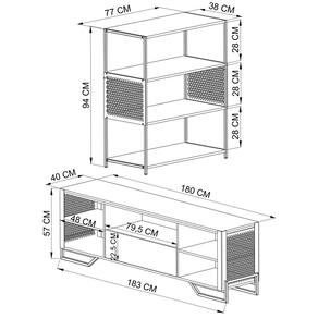 Rack 180 Cm Gaveta Estante 77 Cm Industrial 17X24, é ideal para acrescentar à sua sala um toque especial de design, com muita qualidade. Estrutura em MDP e metal, sendo o tampo do rack de 30 mm, prateleiras (de ambos) e gaveta de 15 mm, base de tubo em metal de 20 mm para o rack, que conta também com 05 prateleiras e ampla gaveta de corrediças telescópicas. A estante possui 03 prateleiras e ambos contam com tela de aço expandido. O peso suportado pelo rack e pela estante é de 30 kg e 40 kg, respectivamente. 02 móveis que em conjunto irão valorizar muito seu ambiente, com sua presença marcante e design em alta. Estes móveis chegarão na sua casa separados em 03 volumes.