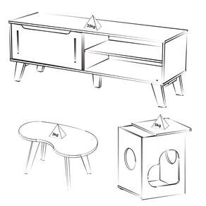 Peso suportado: Rack - Tampo 35Kg | Mesa de Centro - Tampo 3Kg | Mesa de Apoio - Tampo 5Kg