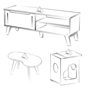 Peso suportado: Rack - Tampo 35Kg | Mesa de Centro - Tampo 3Kg | Mesa de Apoio - Tampo 5Kg