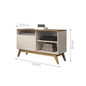 ORack para é perfeitopara você e seu cômodo! Possuipés de madeira, 1 porta com dobradiça metalica e 1 prateleira..