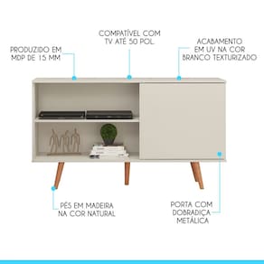 Caracter?sticas: Refer?ncia: 0634 Material: MDP de 15 mm Acabamento: Pintura UV na cor Branco Texturizado Portas: 01 Porta com Dobradi?as Met?licas P?s em Madeira Maci?a na Cor Natural Suporta TV de at? 50 Polegadas